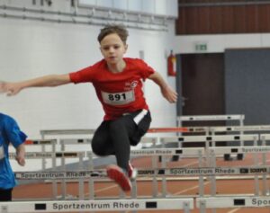 Bei den Jungen sicherte sich Tristan Licht (M12) ebenfalls gleich mehrere Medaillen. Im 60m Sprint belegte er mit 8,70sec. die Silbermedaille. Ebenso über 60m Hürden in 12,04sec und Weitsprung mit 4,53m. Die Bronzemedaille errang er im Hochsprung mit 1,31m. Zufrieden zeigte sich Trainer Rolf Messerschmidt: „die 12jährigen Jungen und Mädchen haben erst im Herbst die Altersklasse gewechselt und haben das erste Mal klassische Wettkämpfe in dieser Form, vorher findet ja die Kinderleichtathletik statt, wie am kommenden Wochenende in Wesel. Dafür haben sie sich gut geschlagen, waren aber auch entsprechend nervös im Vorfeld.“