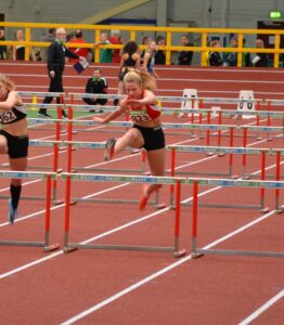 Für den Weseler TV starteten am Samstag Maja Hülser (U18) über 60m Hürden. Nachdem sie sich bei den Regionsmeisterschaften in Rhede über 60m leicht verletzt hatte und auf dem Endlauf verzichtet hatte, schonte sich Maja im Training, so dass sie etwas vorsichtig an den Wettkampf heranging, zumal sie am Sonntag auch noch im 60m Sprint starten wollte. Maja erwischte einen guten Start, aber bereits bei der ersten Hürde stürzte die auf Bahn 1 laufende Nebenläuferin von Maja, Cariana Strauch vom TV Rheingold schwer. Davon leicht irritiert blieb Maja zudem bei ihrer dritten Hürde etwas hängen, so dass sie ihren Vorlauf zwar als zweite beendete, sich aber für den Endlauf nicht qualifizieren konnte, was eigentlich ihr Ziel war. Maja erreichte in 9,75sec (PB) einen hervorragenden 14. Platz von gestarteten 25 Athletinnen.