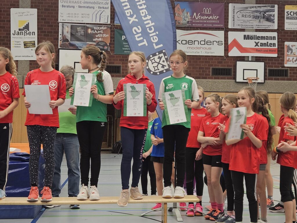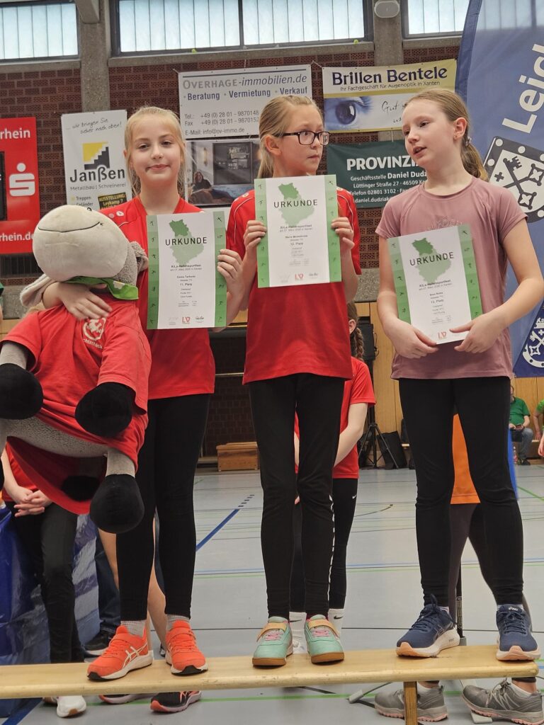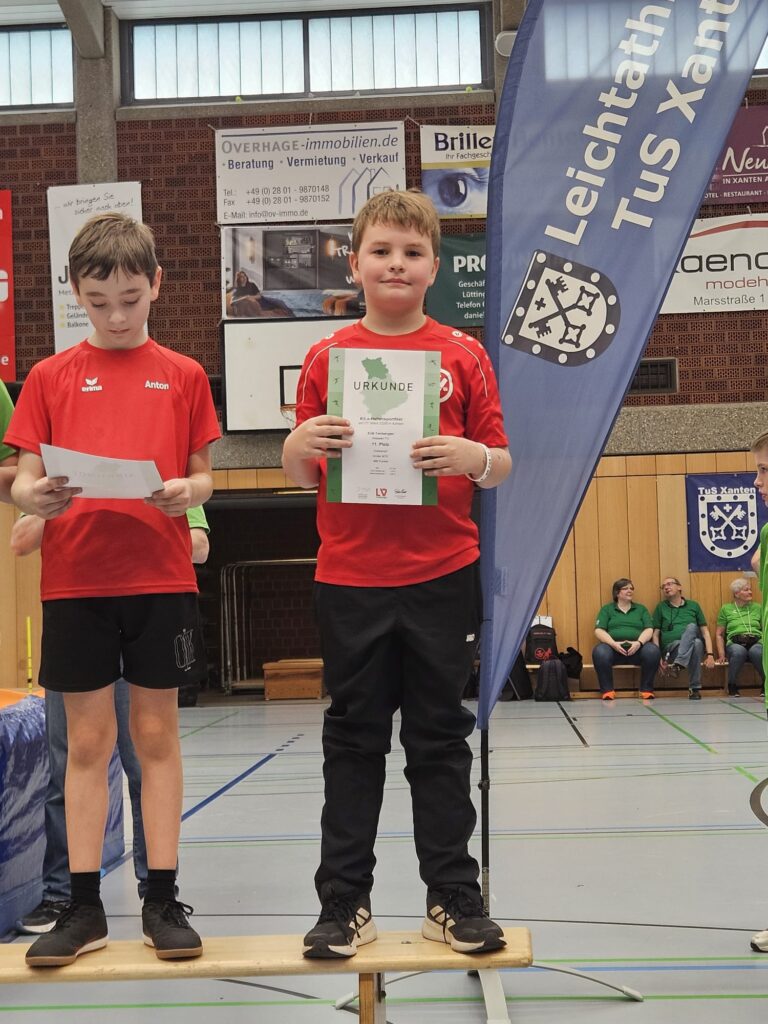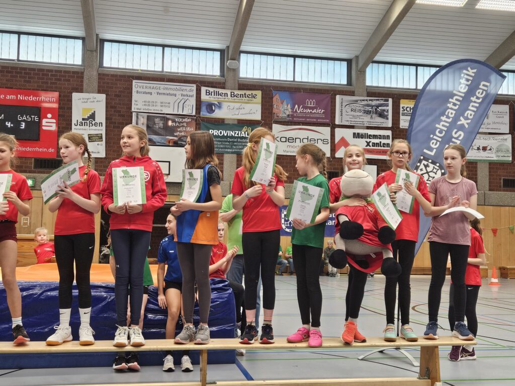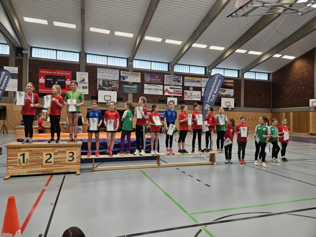 Was für ein Tag! Mit 16 Athletinnen und Athleten waren wir beim Kinderhallensportfest der Region Nord in Xanten stark vertreten – und unser Nachwuchs hat sich wirklich keine Blöße gegeben. Im Dreikampf aus 30-m-Sprint, Hoch-Weitsprung und Medizinballstoßen sowie in der Rundenstaffel gab es strahlende Gesichter, tolle Platzierungen und richtig viel Grund zum Feiern!