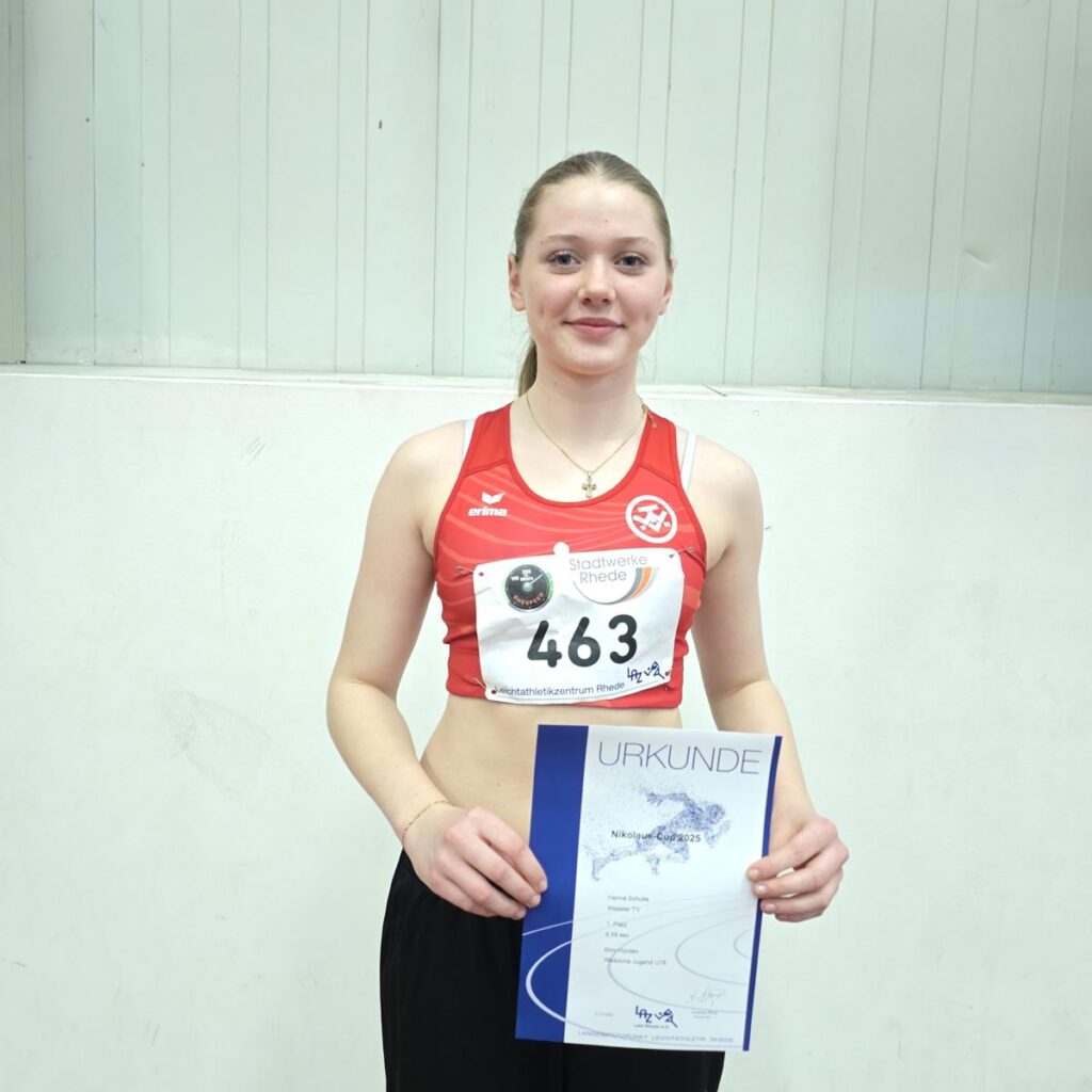 Rhede – Beim Nikolaus-Cup 2025 in der Leichtathletikhalle des LAZ Rhede zeigten die Athletinnen und Athleten des Weseler TV am vergangenen Samstag zum Jahresausklang überzeugende Leistungen. Mit drei Goldmedaillen und mehreren persönlichen Bestmarken fiel die Bilanz durchweg positiv aus.