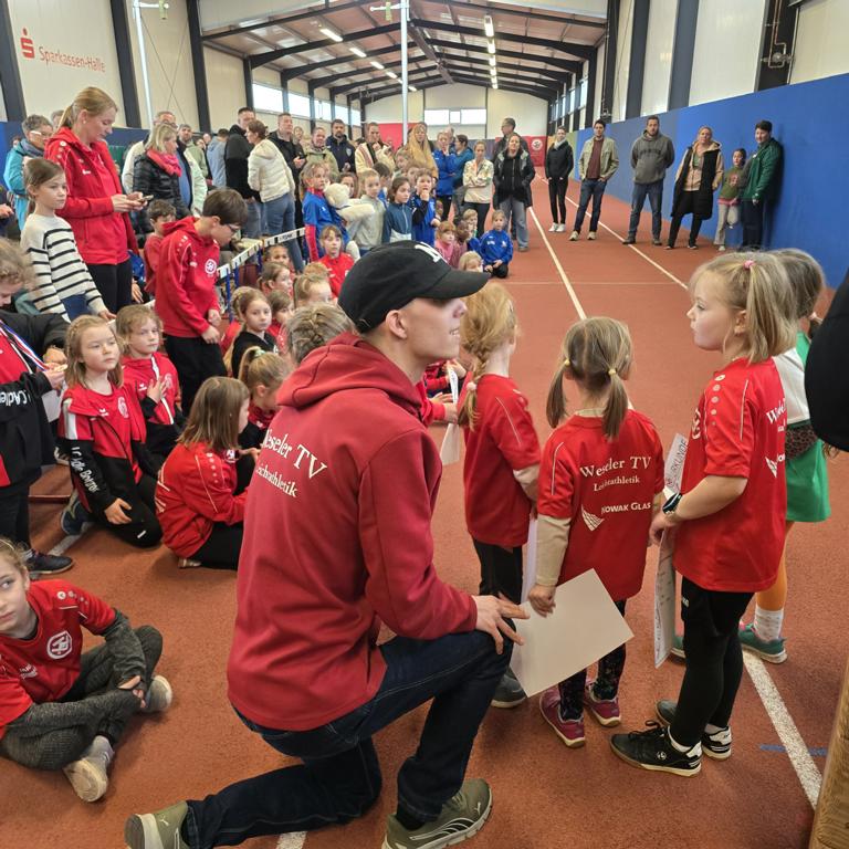 Der WTV-Nachwuchs glänzte in allen Altersklassen, Am14. März 2026 fand das Hallensportfest in der Sparkassenleichtathletikhalle des Weseler TV statt. Mit einer beeindruckenden Mannschaft trat der Weseler TV beim Kinder-Hallensportfest an und konnte sich über zahlreiche Spitzenplatzierungen freuen. Vom Jahrgang 2020 bis 2017 zeigten die jungen Athletinnen und Athleten in den drei Disziplinen Sprint, Weitsprung und Medizinballstoß sowie in der Hindernispendelstaffel herausragende Leistungen.