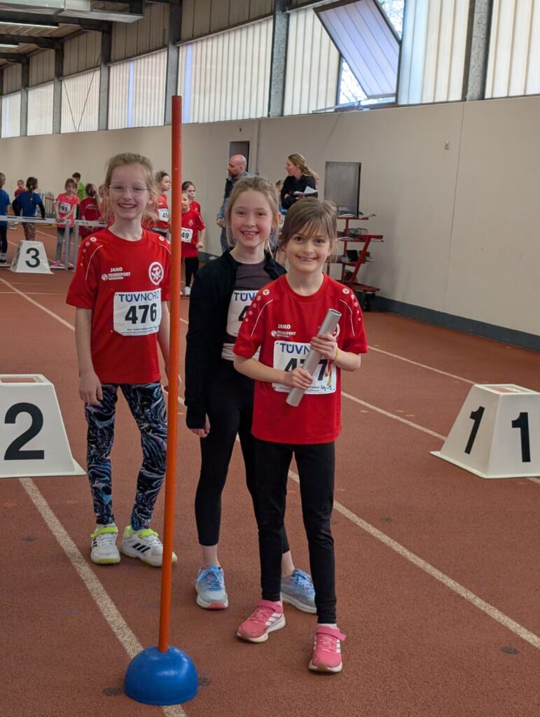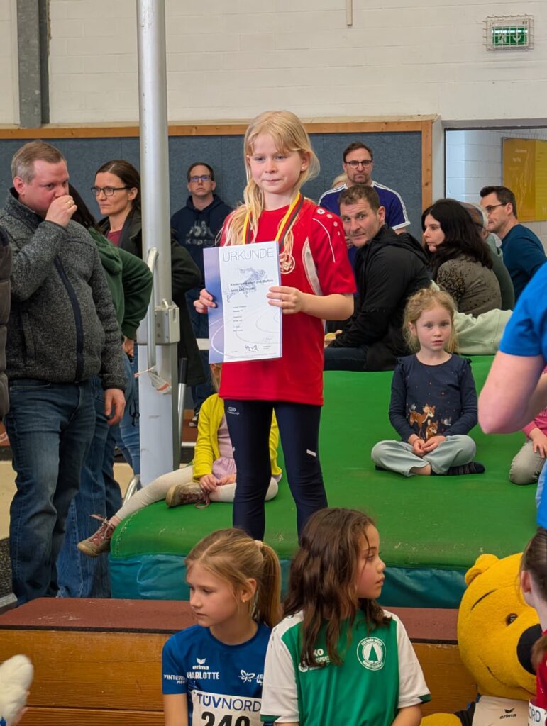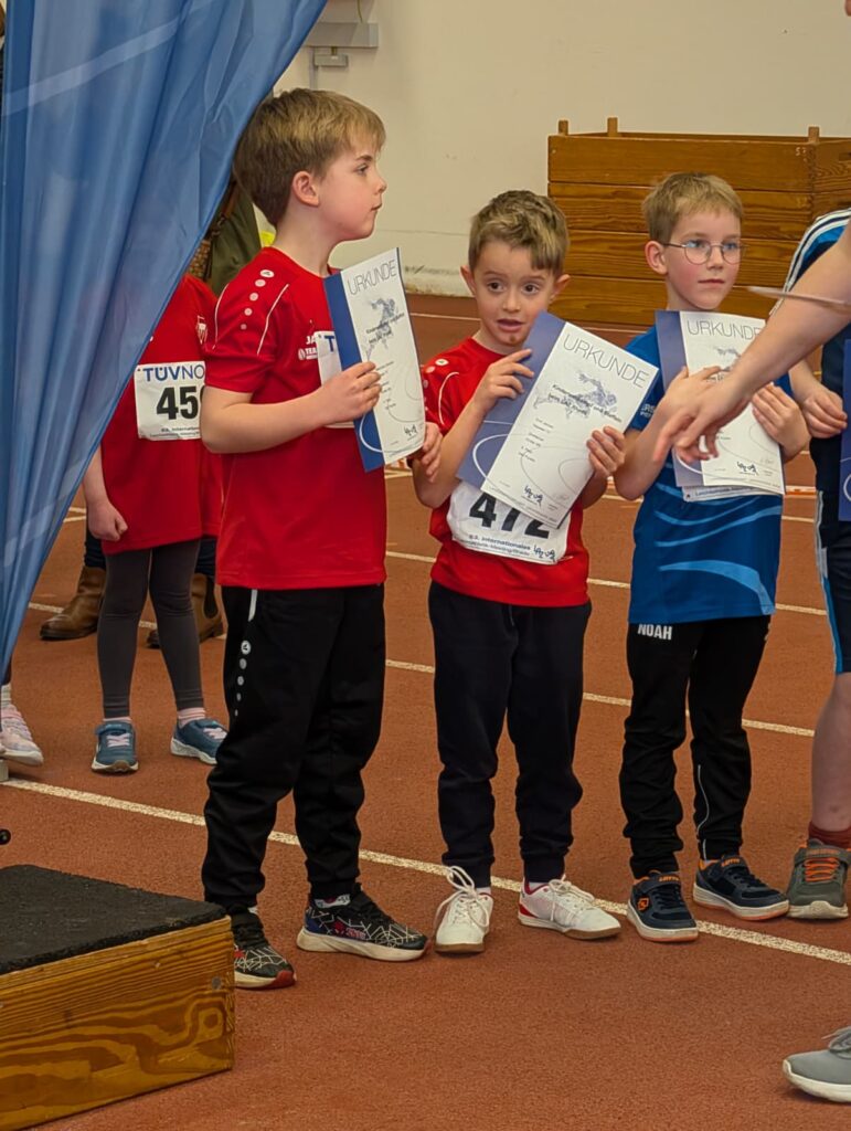 Besonders hervorheben möchten wir Aurelia Knepper, die bei den Mädchen W8 mit starken 993 Punkten die Silbermedaille holte knapp hinter der Goldmedaille, was für eine Leistung! Nora Mierau sammelte in der gleichen Altersklasse mit 798 Punkten wertvolle Wettkampferfahrung. Bei den Mädchen W9 war es ebenfalls eine Freude zuzuschauen: Madita Erhard lief und sprang auf den hervorragenden vierten Platz mit 989 Punkten, gefolgt von Zoe Reinelt auf Platz 7 (936 Punkte), Rosa Liedmann auf Platz 10 (921 Punkte) und Leonie Mura auf Platz 11 (918 Punkte).